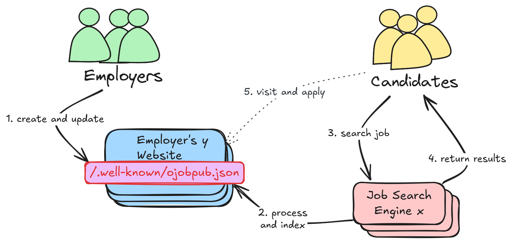 oJobPub.org is not meant to be another job board, even though we might publish collect jobs publish using oJobPub just as a PoC.